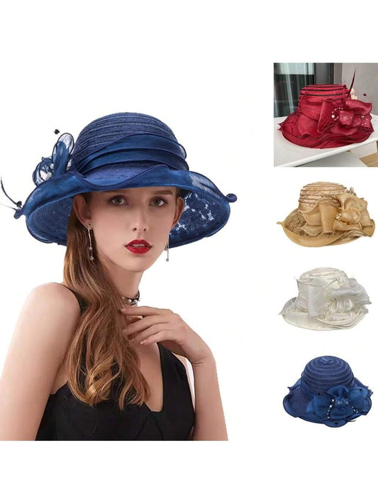 Regular price £13.75 GBPRegular priceUnit price / per£17.75 GBPSale price £13.75 GBP1pc Women's Vintage Floral Organza Derby Hat Kentucky Foldable Hats Fascinator Sun Hats UV Protection For Wedding Tea Party Hat, School