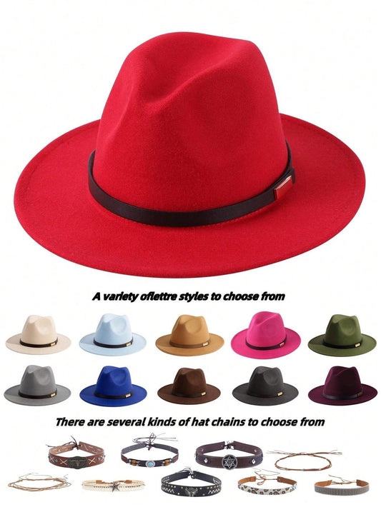 1pc Women's Western Style Hat, Premium Soft Felt Heart-Shaped Belt Decoration, Unisex Casual Versatile Fedora, Women Stage Fashion Hat, Autumn/Winter Outdoor Versatile Hat, Fashionable Minimalist Asymmetrical Chain Belt Decor