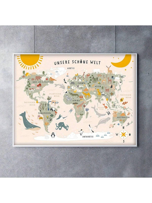 1pc Wonderful World Animals Map Canvas Print - Wall Art For Living Room, Bedroom, Office Decoration
