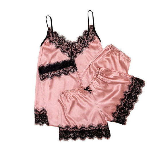 Three-piece lace pajamas