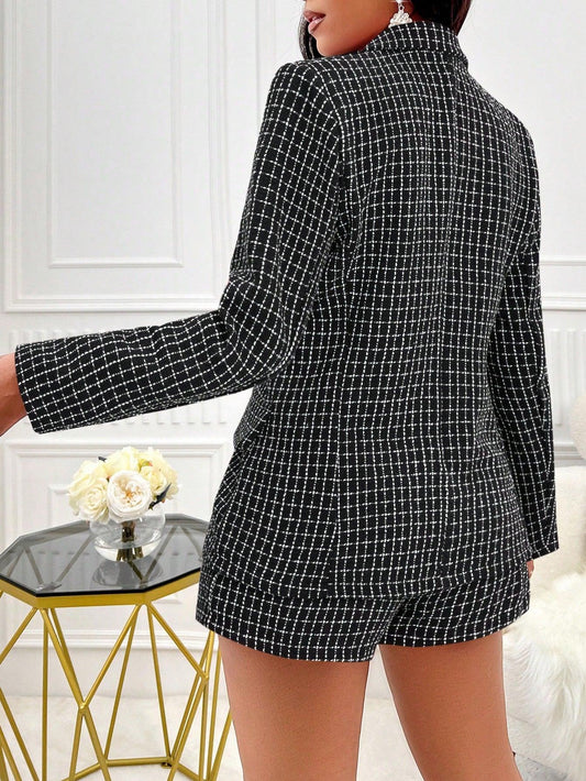 VaVaLuxe Women Vintage Casual Elegant Herringbone Lapel Blazer