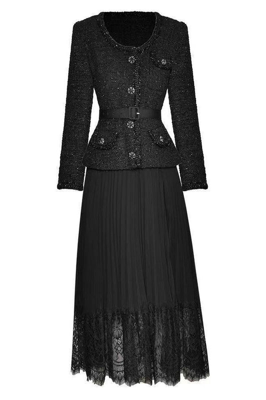 Regular price £240.60 GBPRegular priceUnit price / perSale price £240.60 GBPV-neck Long Sleeve Lace-up Cinched Patchwork Two-piece Dresses Women