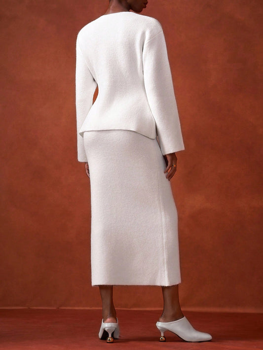 Zivah Women's Solid Color Cardigan & Knit Skirt 2 Pieces Set, Suitable For Commuting