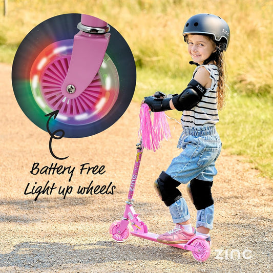 Zinc Two Wheeled Kids Scooter for Ages 3 – Folding 2-Wheel Kick Scooter with Light Up Wheels, Lightweight, Height Adjustable, Anti-Slip Footplate, Rear Footbrake