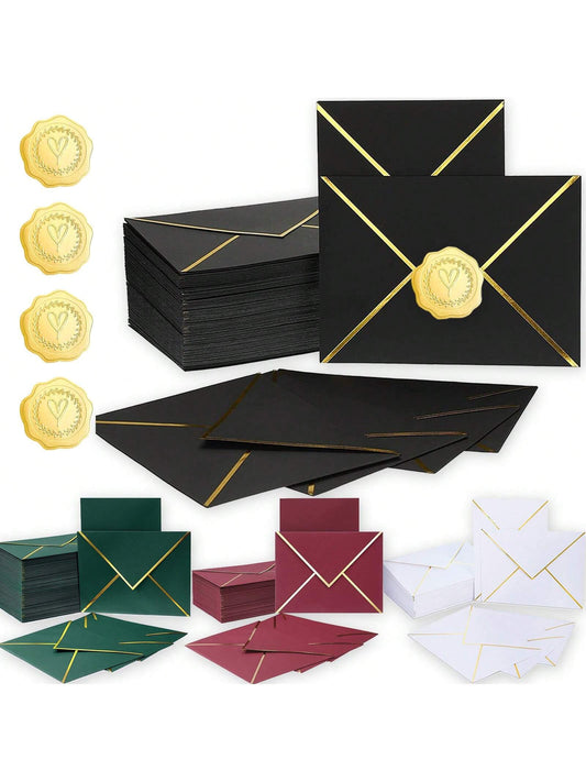 A7 Luxury V-Flap Invitation Envelopes With Stickers 5x7 Inches Card Envelopes With Golden Foil Border For Graduation Envelopes, Invitation Envelopes, Wedding Envelopes, Parties, Greeting Birthday (50pcs Envelopes 50pcs Stickers) Back To School