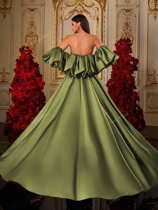 Regular price £151.61 GBPRegular priceUnit price / per£158.61 GBPSale price £151.61 GBPA Olive Green 3D Petal Beaded Embroidery Strapless Puff-Sleeve Satin Cape Mermaid Luxury Court-Style Evening Gown
