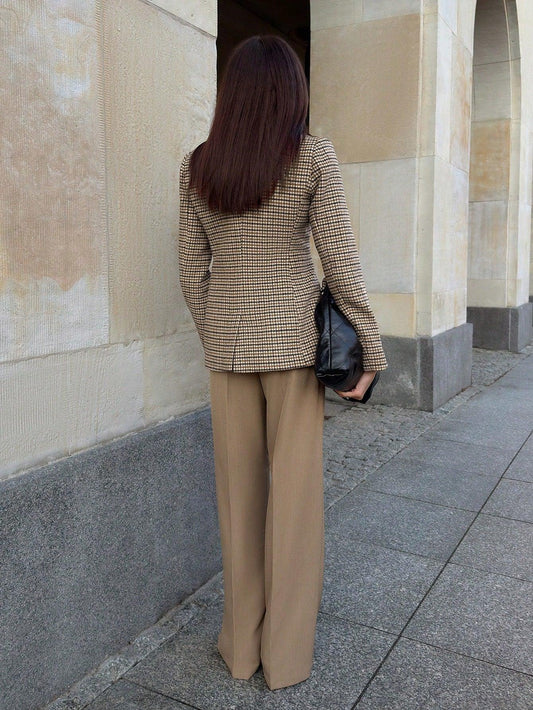 Regular price £30.67 GBPRegular priceUnit price / per£35.67 GBPSale price £30.67 GBPAnewsta Vintage Coffee-Colored Plaid Tailored Collar Long Sleeve Blazer