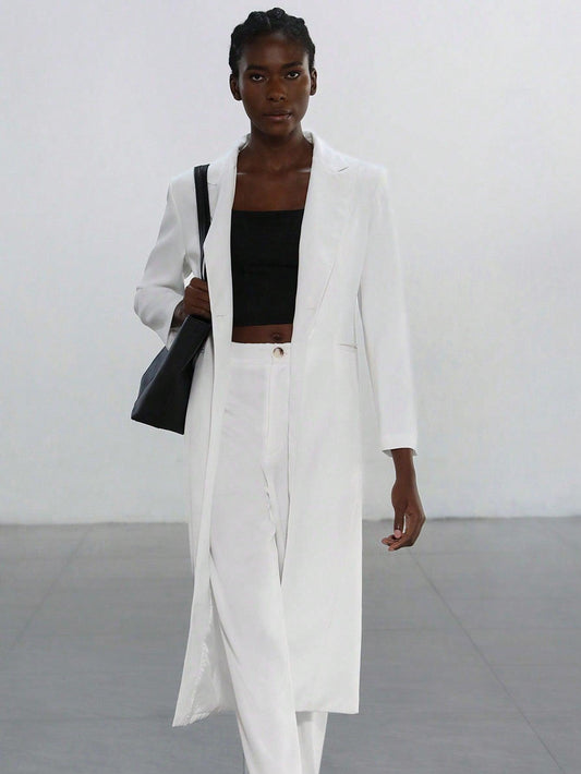 Vendor:SHEINRegular price £49.49 GBPRegular priceUnit price / per£54.49 GBPSale price £49.49 GBPAveloria Modichic Women's Fashion Vintage Inspired Wide Shoulder Long Sleeve Single Button Split Hem Long Blazer Jacket With Pants Suit Set