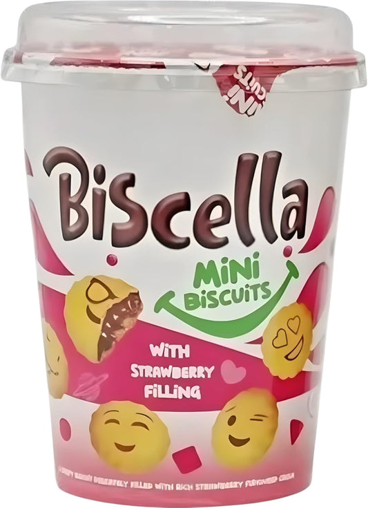 Biscella Mini Biscuits with Strawberry Filling 6 Pack (125g x 6) | Halal Certified, Crispy Biscuits with Sweet Strawberry Cream