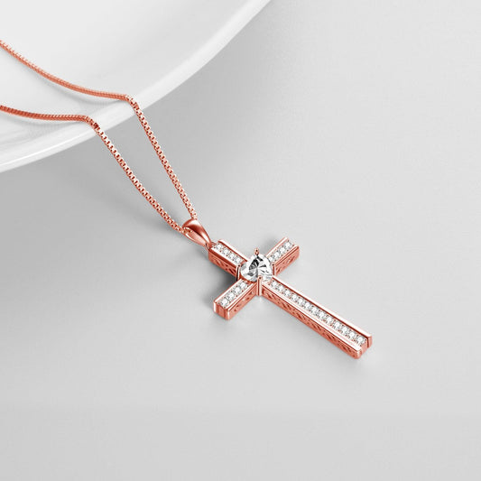Birthstone Rose Gold Plated Cross Necklace for Women Jewelry Gifts