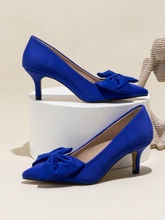 Regular price £21.25 GBPRegular priceUnit price / per£26.25 GBPSale price £21.25 GBPBow Decor Velvet Stiletto Heeled Loafer Pumps, Solid Blue Bow Knot Design Fashionable High-Heeled Women's Pumps Valentines