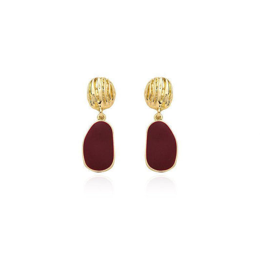 Burgundy Geometric Piece Unique Design Hong Kong Style Earrings