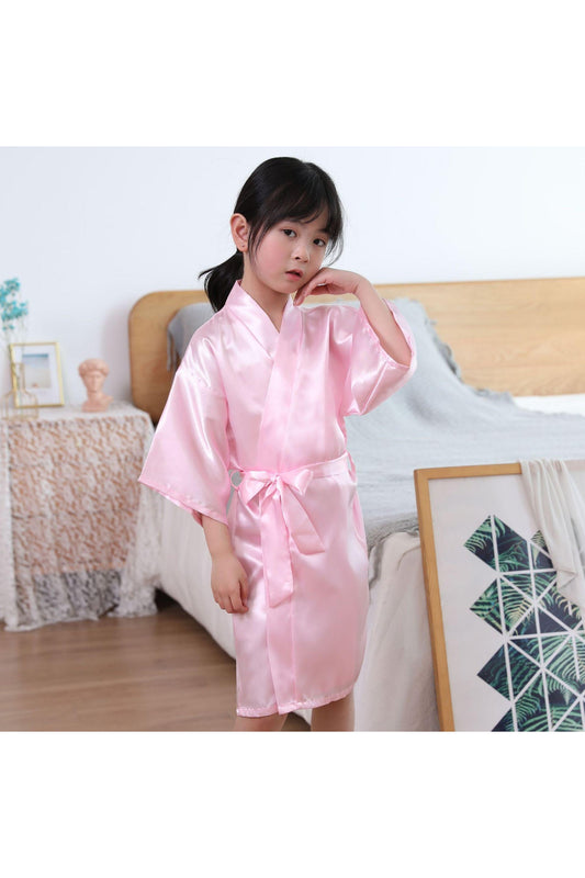 Children's Solid Color Dressing Gown Silk Nightgown Skirt Satin Bathrobe Long Cardigan Kimono