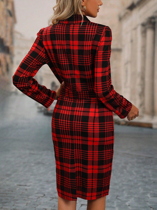 Clasi Plaid Print Lapel Collar Single Button Blazer