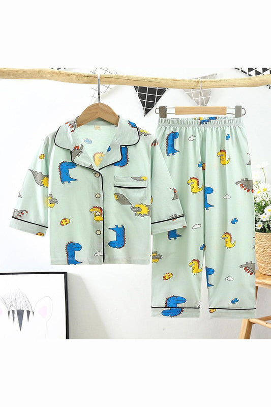 Cotton Kids Lapel Pajamas Set With Three Quarter Sleeves