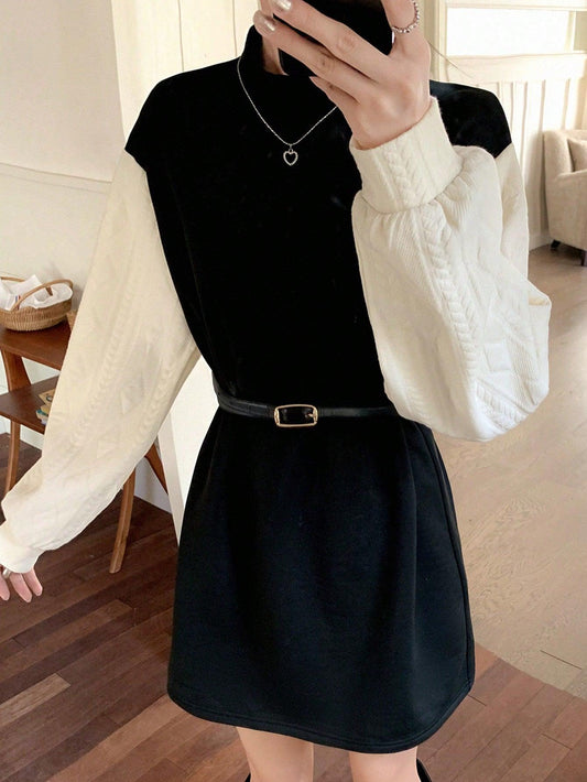 DAZY Lace Patchwork Fashion High-End French Style Knitted Sweater For Women
