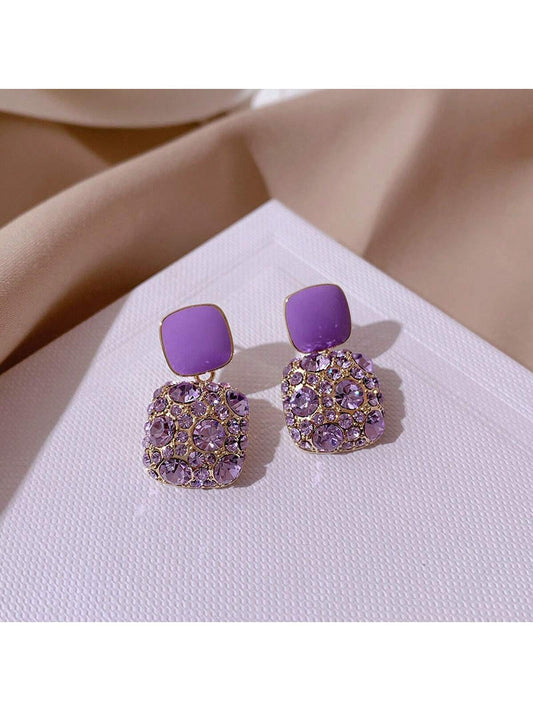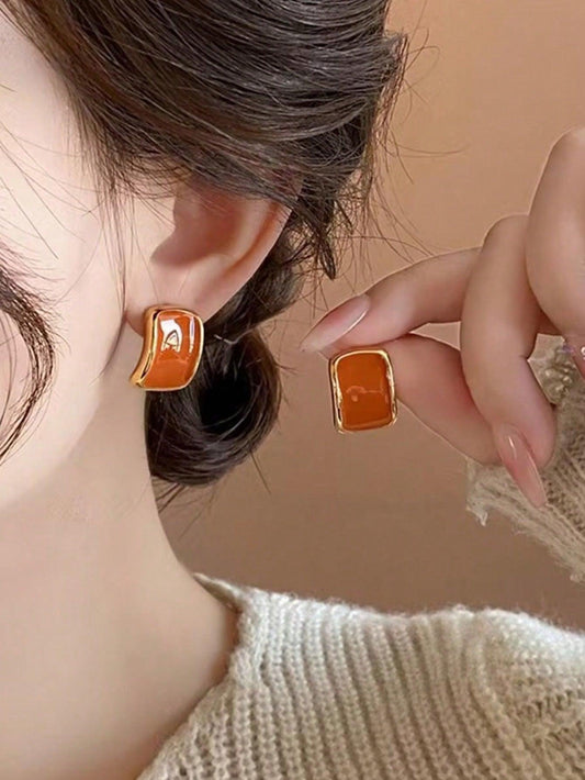 1pair Vintage Elegant Small Geometric Oil Drip Square Earrings For Women