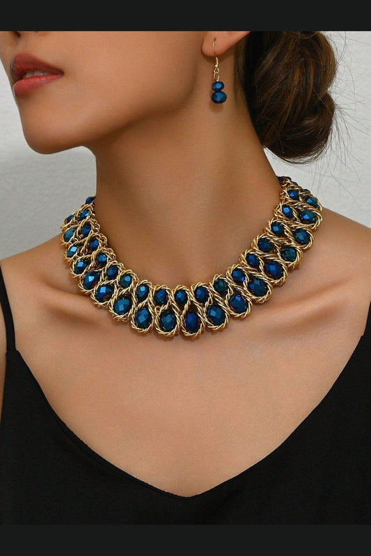 1pc 2-Row Crystal Handmade Beaded Bracelet With Aluminum Chain Loop Set