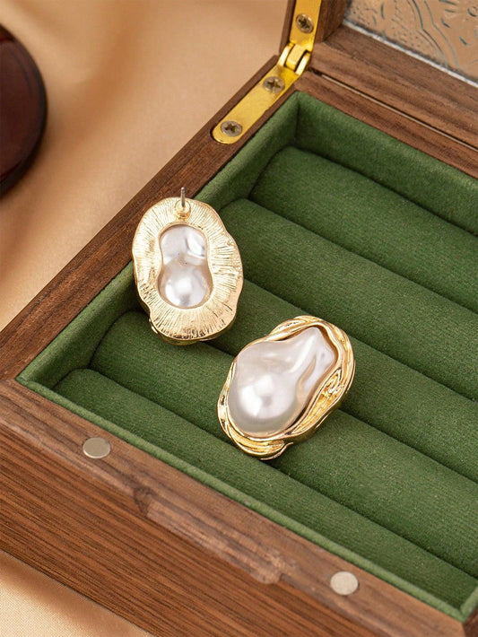 1pair Vintage Elegant Pearl Stud Earrings For Women