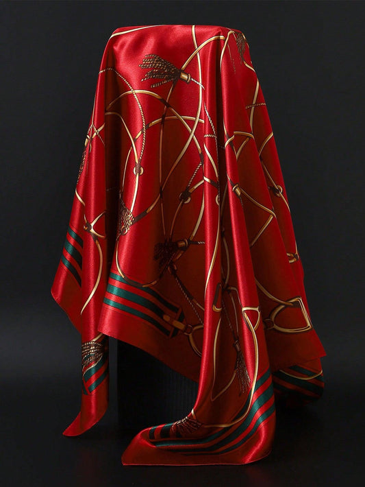 1pc 90*90cm Popular Anti-UV Headscarf Shawl, Muslim Unisex Outdoor Windproof Dust-Proof Hijab, Air-Conditioned Room Scarf, Thin Seasonal Chain Print Colored Square Bandana Scarves (Blue, Green)