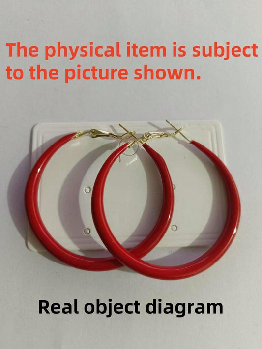 1pair Vintage Style Red Drip Glaze Circle Shaped Hoop Earrings For Women, With Unique Design And High Fashion Sense