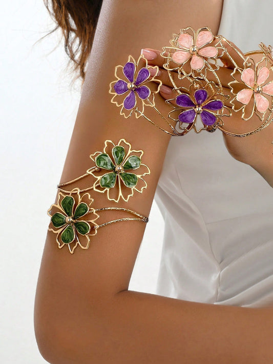 Regular price £4.17 GBPRegular priceUnit price / per£4.34 GBPSale price £4.17 GBP1pc Bohemian Vintage Metal Hollow Floral Arm Cuff Bracelet, Colorful Adjustable Armband For Women, Elegant Beach Vacation Accessory