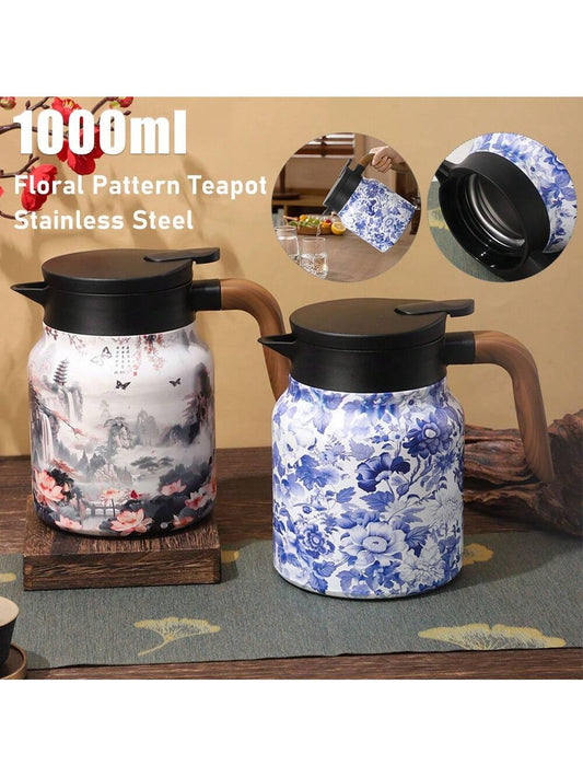 1pc 1000ml Vintage Floral Tea Stainless Steel Tea Kettle Drip-Proof Tea Pot With Tea Infuser Mini Thermo Coffee Pot