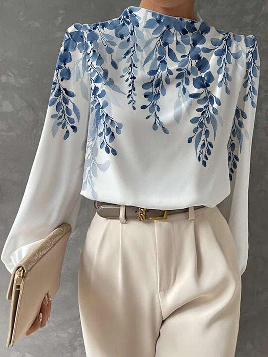 Half High Collar Lantern Sleeve Printed Top