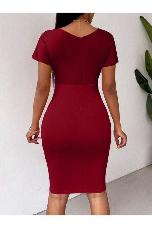 Lyxana Ladies' Solid Color Simple Daily Dress With Stud Embellishments For New Year Clothes