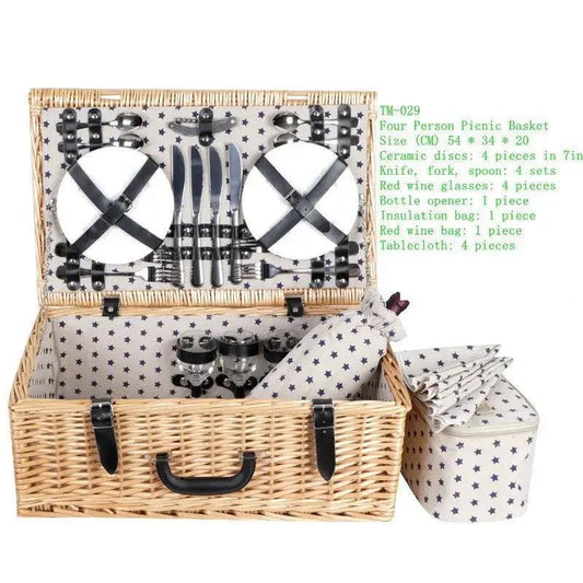 Regular price From £161.99 GBPRegular priceUnit price / per£161.99 GBPSale price From £161.99 GBPHome Outdoor Outing Vine Weaving Tableware Fruit Blue Insulated Bag with Cover Gift Basket Couple Camping Picnic Basket