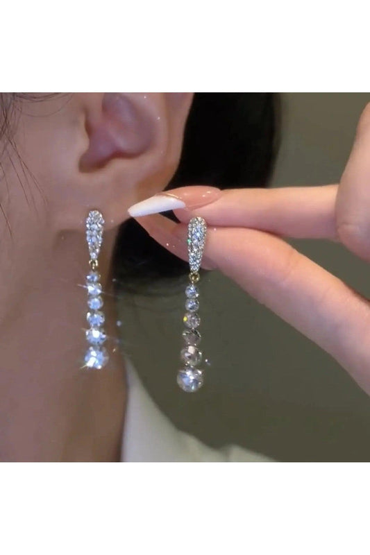 Sterling Silver Needle Long Rhinestone Tassel Earrings