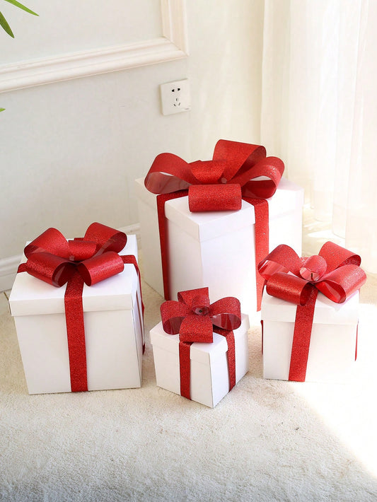 4pcs Matte White Lid Bow Ribbon Decor Gift Box, Photography Prop For Christmas Party, Gift Packaging, Backdrop Decoration Home Decor Christmas Decorations Room Decor Winter