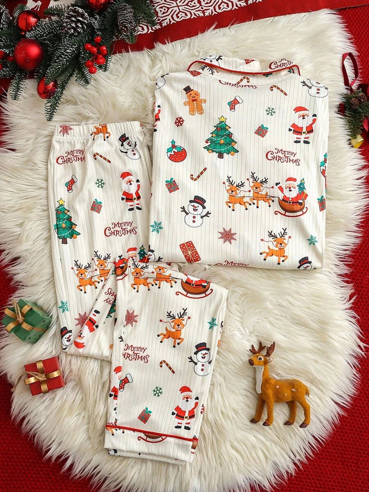Vendor:SheinRegular price £20.99 GBPRegular priceUnit price / per£27.99 GBPSale price £20.99 GBPWomen's Christmas Pajama Set, Casual Ribbed Knit Sleepwear For Young Ladies, Mothers, Home, Party, Featuring Festive Santa Claus, Snowman, Candy Cane, Reindeer Allover Prints, Red Color Blocking, Collared Cardigan Top And Long Pants, 2-Piece Set, Mommy &