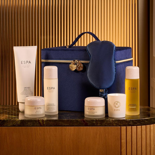 ESPA Experience Collection | Luxury Spa Gift Set Includes 7 Items Worth Over £200 | Cleanser, Exfoliator, Moisturiser, Hair Mask, Body Oil, Candle, Silk Eye Mask