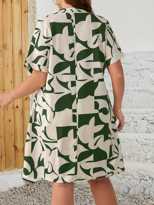 EMERY ROSE Plus Size Women's Summer Short Sleeve Geometric Pattern Casual Shirt Dress