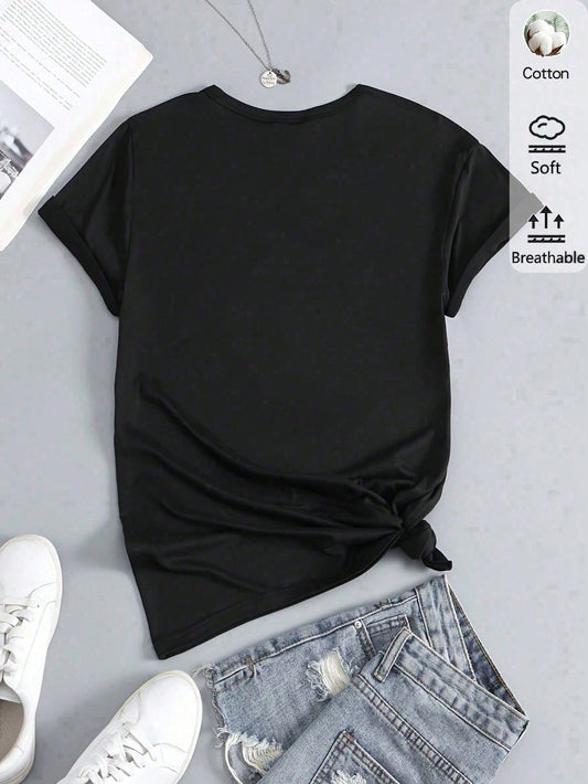 SHEIN MOOSTA Round Neck Letter Print Short Sleeve T-Shirt And Shorts Summer Casual 2pcs/Set