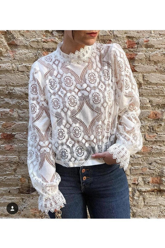 Sexy Long-Sleeved Stand-Collar Lace Shirt