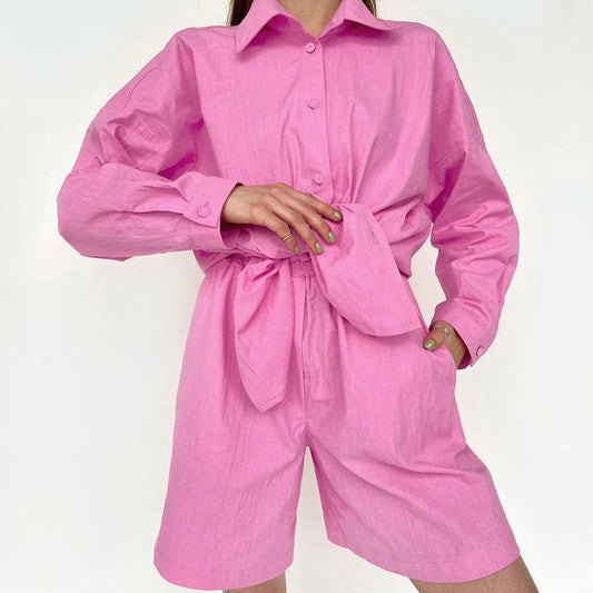 Textured Lightweight Cotton Oversized Shirt and Shorts