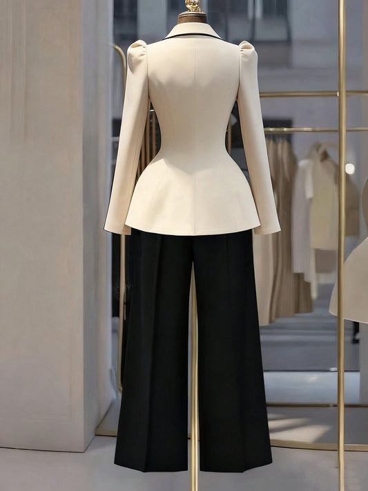 Franclia Elegant Fashion Notched Collar Faux Pocket Waist Suit Set For Women, Office Wear