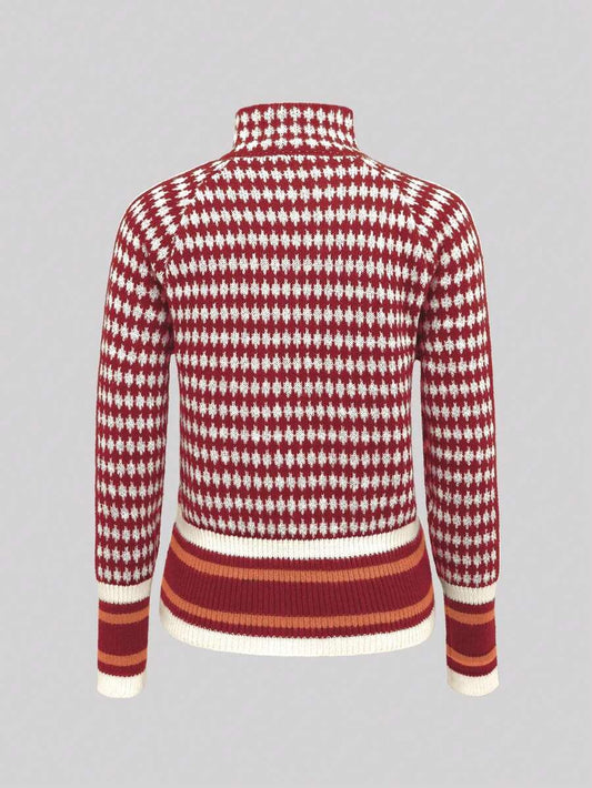 Women's All-Over Print Raglan Sleeve Zip Front Knit Stand Collar Cardigan