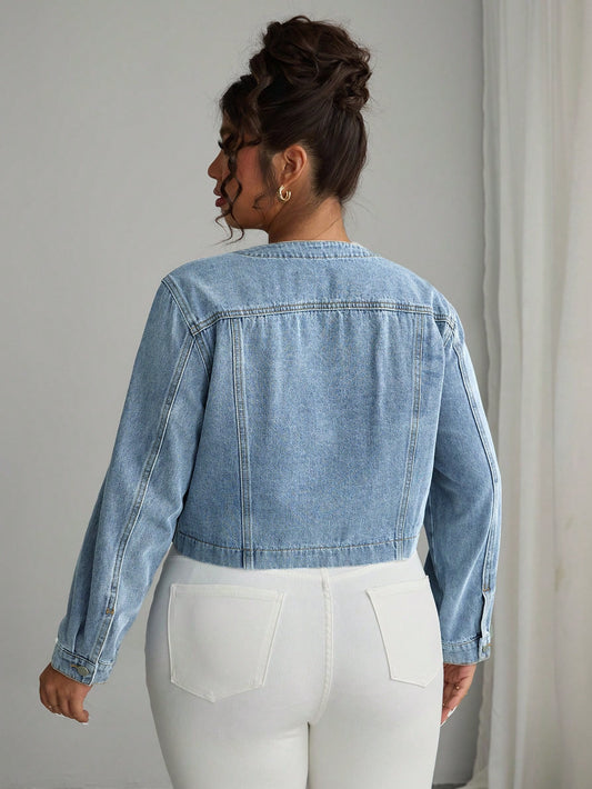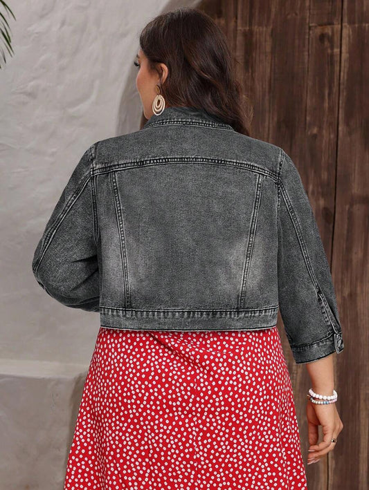 EMERY ROSE Plus Size Casual Washed Distressed Short Denim Jacket
