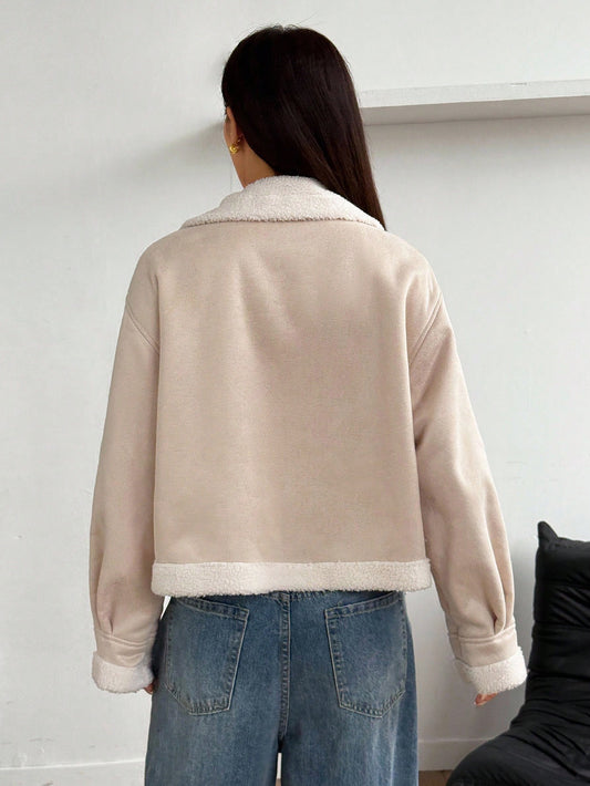 SHEIN PETITE Winter Women Jacket Women's Loose Fit Zip-Up Collar Thermal Lined Casual Jacket For Fall/Winter Winter Women Coat Jacket Cropped Jackets Crop Jacket Women Jackets Oversized Jacket Jacket Y2k Women Jackets
