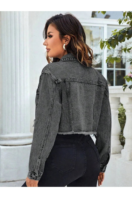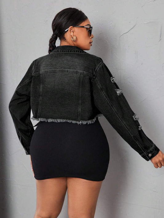 SHEIN SXY Plus Size Women's Short Denim Jacket With Frayed Hem