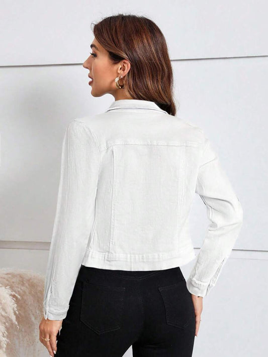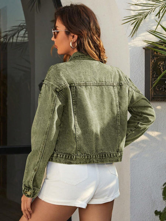 SHEIN Essnce Flap Pocket Crop Denim Jacket For Spring