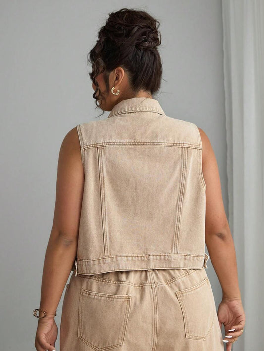 EMERY ROSE Plus Size Spring/Summer Casual Denim Vest Jacket