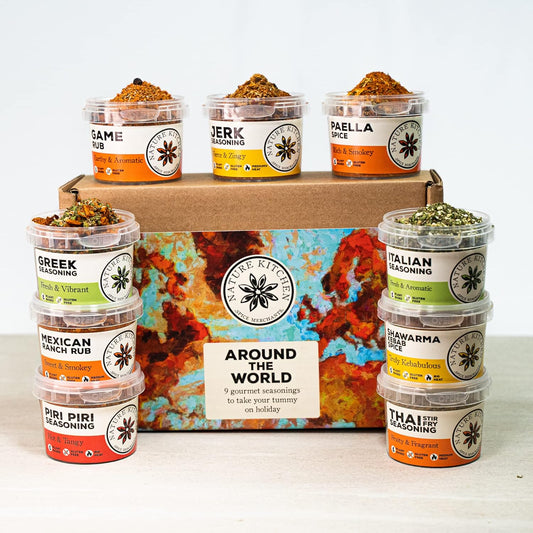 Nature Kitchen Around The World Gourmet Seasoning Gift Set 9 Spice Pots Perfect for At Home Friends and Family dining.