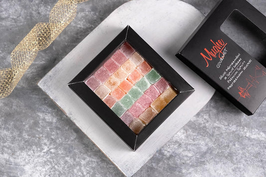 Regular price £45.00 GBPRegular priceUnit price / per£49.00 GBPSale price £45.00 GBPMughe Gourmet Turkish Delight Candy Elegant Tin Box - 1.65lb/750g - Halal, Vegan Lokum Fruit Flavors Rose, Strawberry, Lemon, Orange, Mint - Gift for Special Occasions, Father's Day, Birthdays