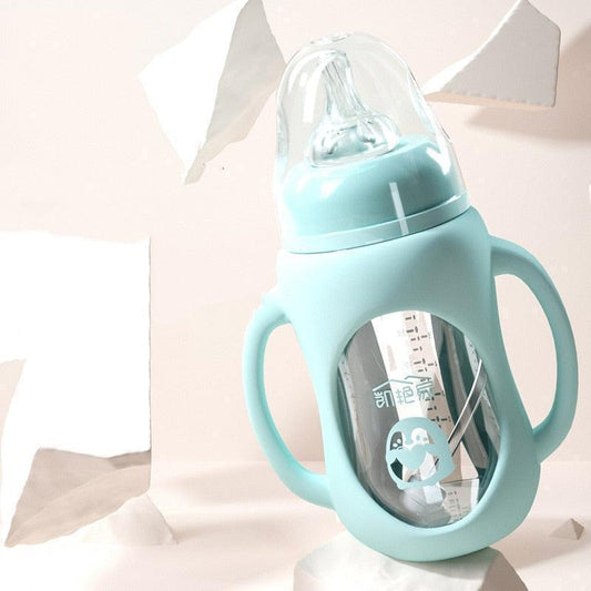 Cute Glass Baby Bottle Soft Feel Silicone Straw