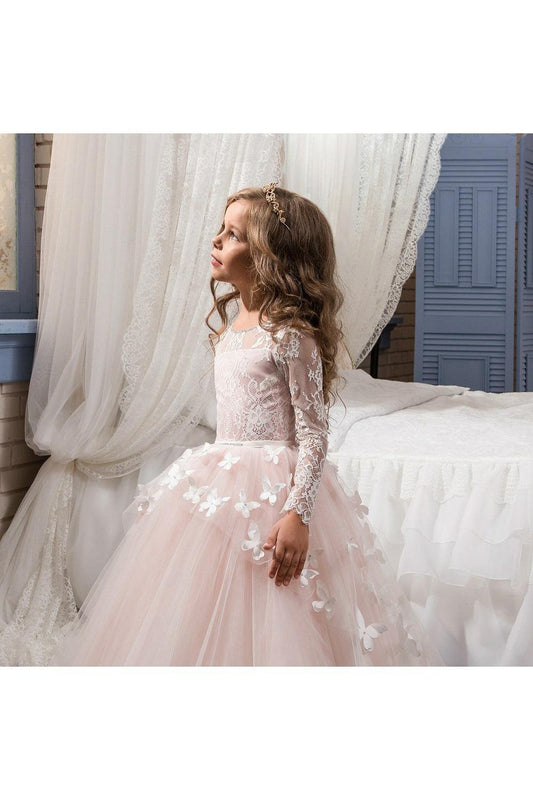 Long-sleeved girls children's wedding dress