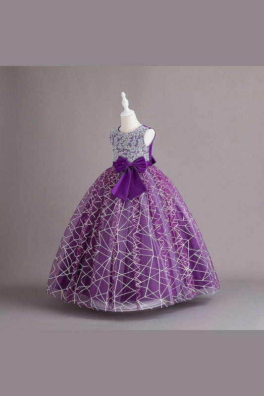 Girl's Gown Mesh Backless Bow Umbrella Princess Dress